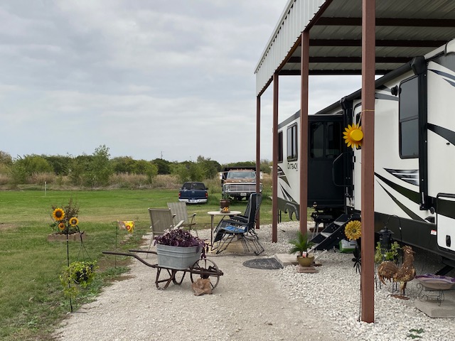 A lot of the spots are covered and some are not. The RV spots with awnings are $650 a month and with no awning they are $550 a month all bills paid. We require a $50 deposit as well as pet deposits for all approved dogs.